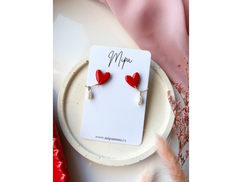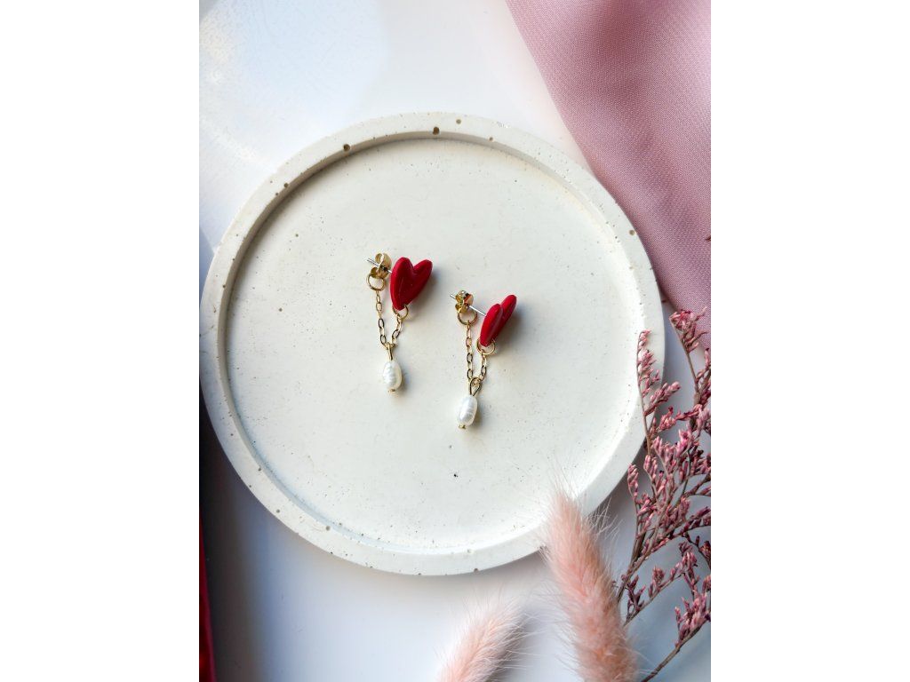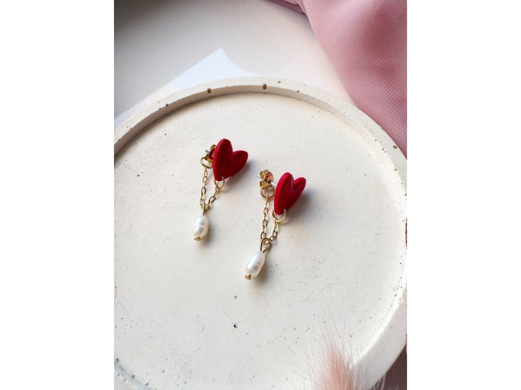 Náušnice jsou mnou ručně vyrobené z polymerové hmoty a říční perličky.