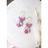 Výrazné visací náušnice v jemných odstínech růžové, bílé a fialové.